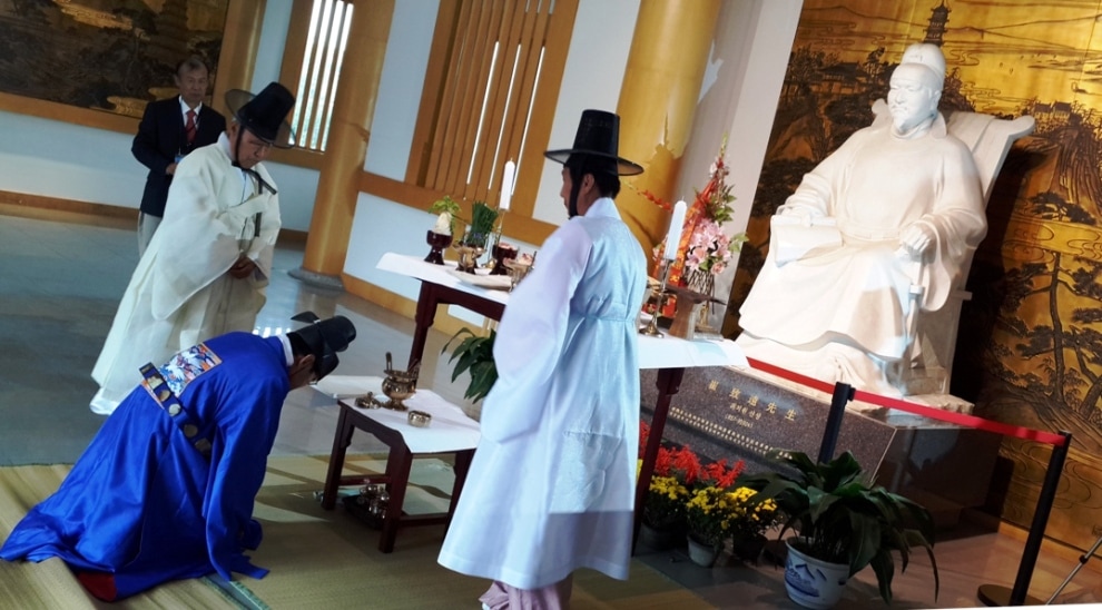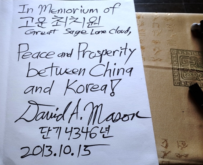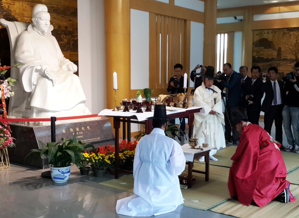 | Ceremony in China's Yangzhou City, Celebrating Go-un Choi Chi-won Korea's great Confucian-Daoist "Lone Cloud" Sage-Hero October 15th, 2013 |