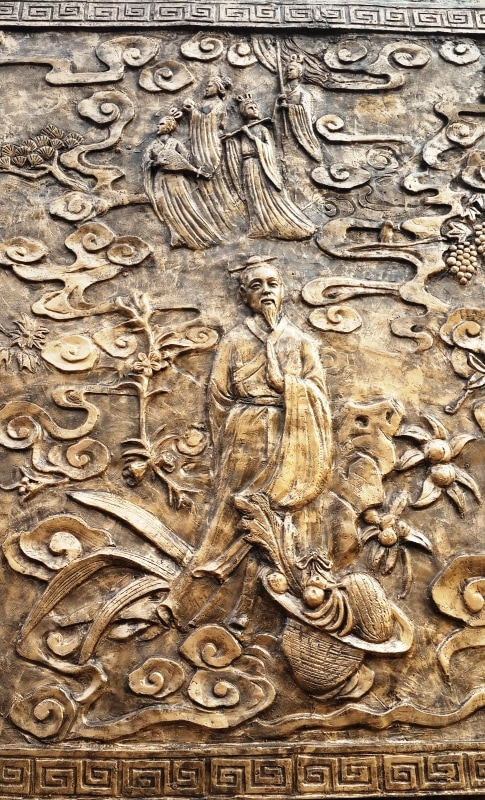 | These large bronze plaques show some biographical scenes from Kim Ga-gi's life; however I don't yet know the tales they depict and am not even sure what order they should be in! |