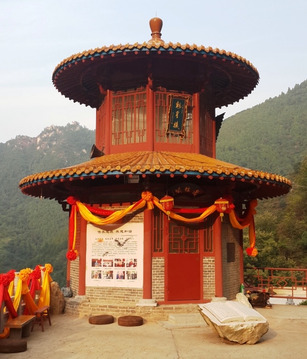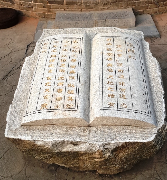 | Monuments honoring Master Kim Ga-gi recently established in front of the ancient Louguan-tai Temple. |