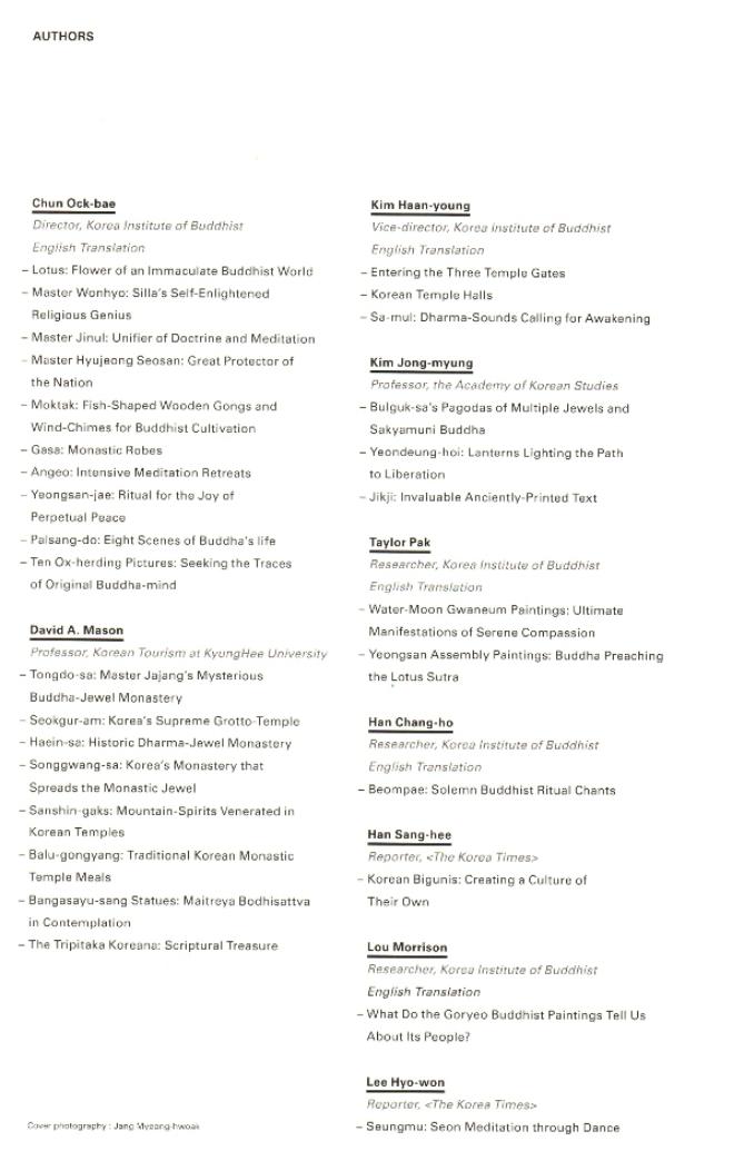 이 책은 제목에서 드러나듯 한국불교와 문화와 사상을 대표하는 아이콘으로 한국불교문화를 소개하고 있다. 데이비드 메이슨 경