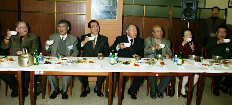 toasting together with rice-wine, at the banquet following the first meeting of the AC