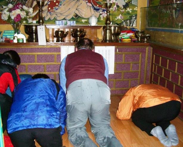 within the District, and here are shown bowing in its excellent Mountain-spirit Shrine.