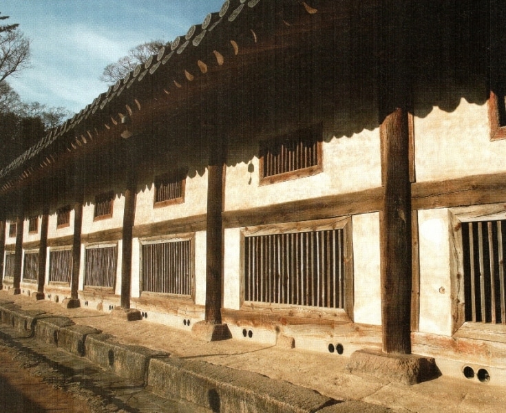 | The very long Janggyeong Panjeon repository buildings are located at the rear of Haein-sa |