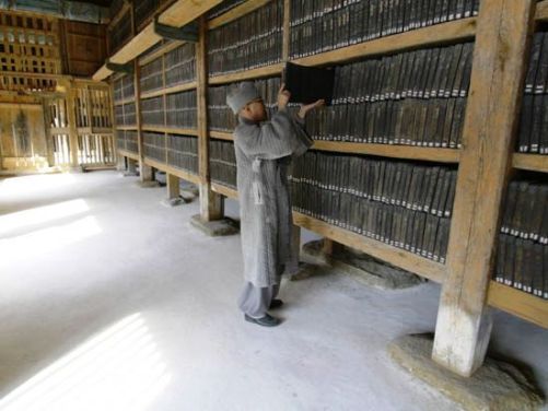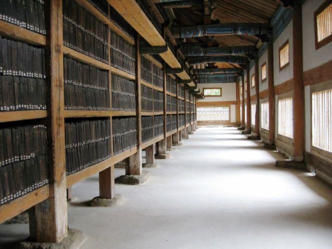 | The Tripitaka Koreana Woodblocks stored in the near-twin Janggyeong Panjeon buildings, a UNESCO-designated World Heritage Site -- info HERE. |