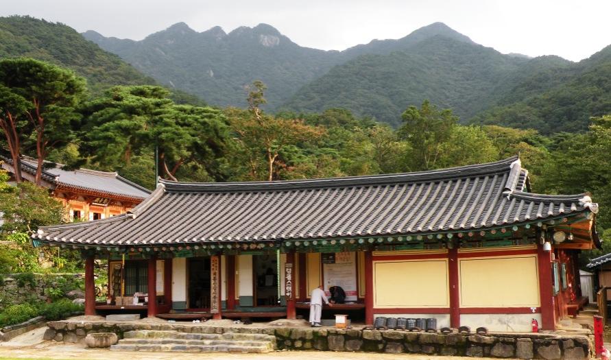 Old Administration Hall with Sambul-bong and Gwaneum-bong peaks in the distance Sujeong-bong closer, on the south side of the main courtyard. All these photos are from my September 2012 visit with the Wonhyo Pilgrimage Trail Project.