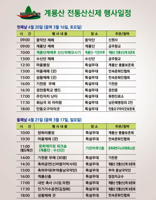 | Gyeryong-san Sanshinje Festival 1999 Gyeryong-san Sanshinje Festival 2018 article-1 KT Gyeryong-san Sanshinje Festival 2018 article-2 KQ |