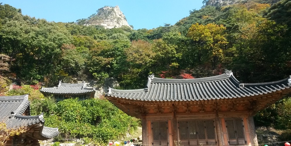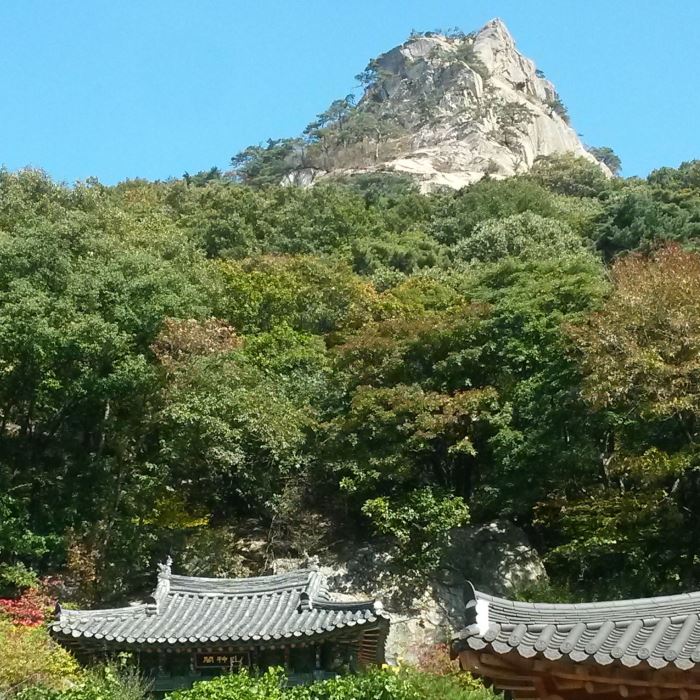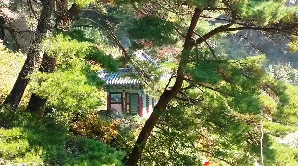 | This grand Sanshin-gak [Mountain-spirit Shrine] of Shinheung-am sits right below mighty Shinseon-bong [Spirit-Immortal Peak] to the north |