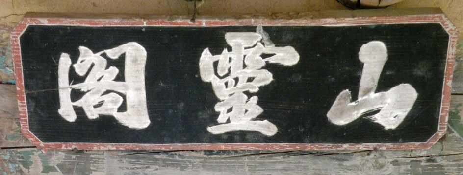 a charming old-style raised-small Sanshin-gak with a very simple faded Sanshin painting: