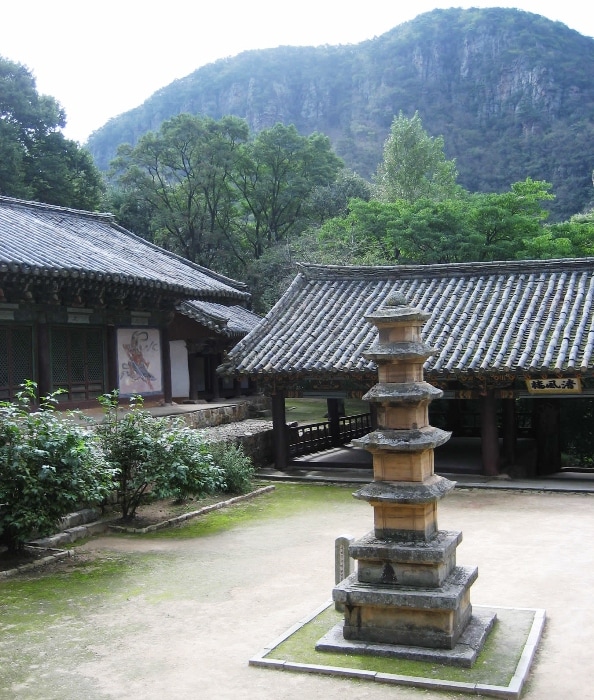 Geukrak Hall (극락전/極樂殿), which was last rebuilt in 1374, standing on a raised stone