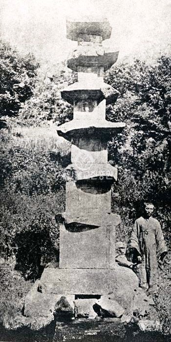 Shrine, 산신각/山神閣]. An early Goryeo period five-story stone pagoda stands in the
