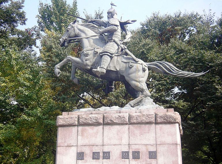 | statue of General Kim Yu-shin on Myeonmok-san [a.k.a. Nam-san, South Peak] in Seoul -- from wikimedia |