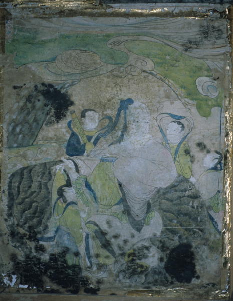 holding a tiger-colored artificial-leaf-fan, both very rare motifs. The Chil-seong painting found next to it is