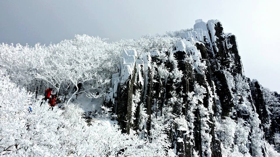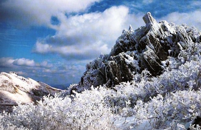 | although it is in the far-south of Korea, it is famous for its winter snowscapes on the crags |