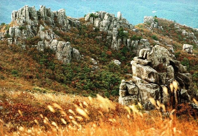 | Mudeung-san 無等山 무등산 1,187m at summit Holy "broken-top" Mountain of Gwangju City One of the Top-100 Sacred Mountains of Korea |