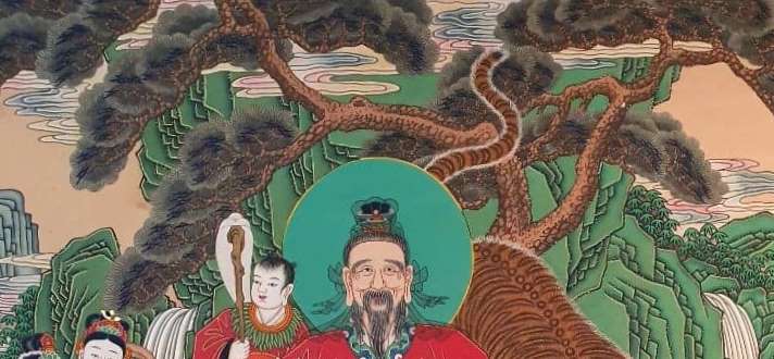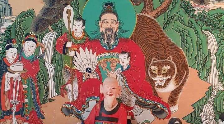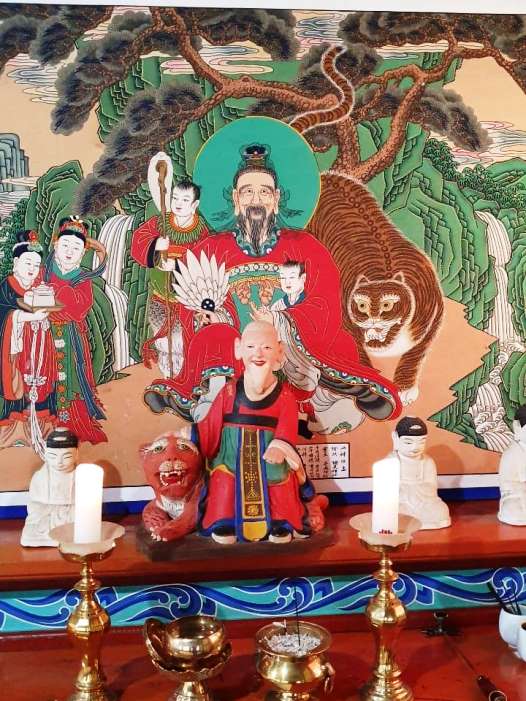 | Sanshin Painting of Wonhyo-sa Temple, on the high slopes of Mudeung-san -- four dongja attendants is pretty rare! |