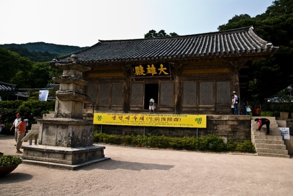 | Ancient Pagoda and Main Hall of Deoksung-san Sudeok-sa; this hall is said to be South Korea's oldest wooden building! |