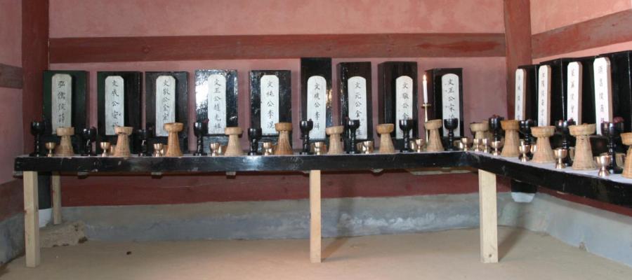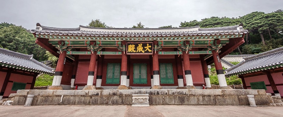 | The Daeseong-jeon or Great Sages Shrine-Hall, modeled after the main national one in Sunggyun-gwan University in Seoul, where Confucius and other Chinese and Korean wise-saints are venerated. |