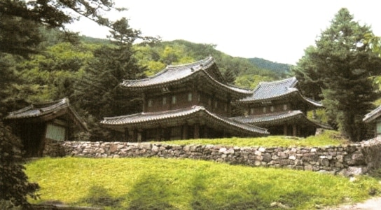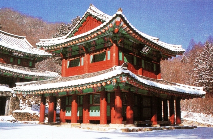 | Joseon Dynasty Archives Buildings (reconstructed) on the southwestern slopes, not far from Woljeong-sa. Behind it is the Seonwon-bogak Hall that still survives from Joseon days. |