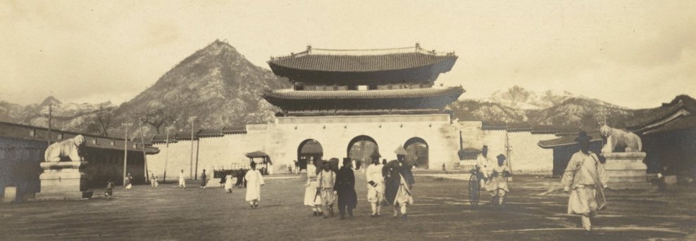 Gwanghwa-mun Gate in front of Bugak-san, with Samgak-san seen in the right background, in 1904.
