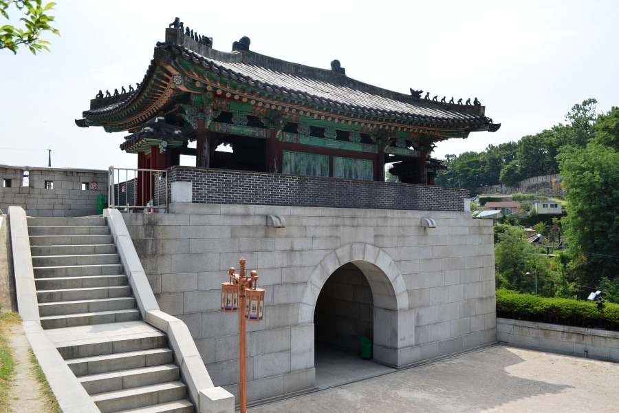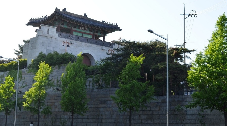 | Seonggyun-gwan Royal Neo-Confucian College area into scenic Seongbuk-dong. It lends its name to the neighborhood around Daehangno [University Avenue] and the Hyehwa Metro Station. Today, it sits beside and above the busy highway that was cut through upper Nak-san Ridge. |