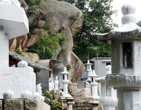 | The Sanshin-gak [Mountain-spirit Shrine] set above the others |
