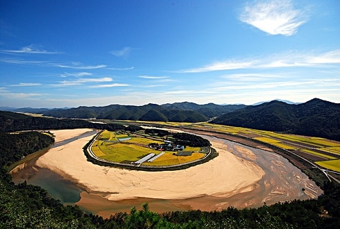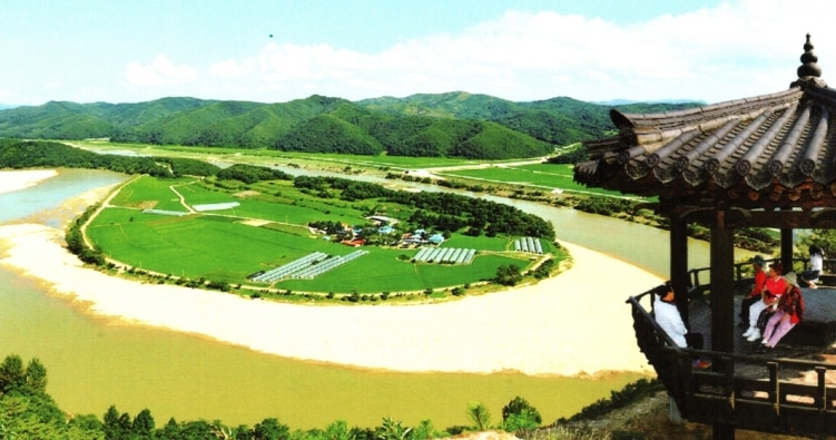 | Charming Hoeryong-po Village (previously named "Uiseong-po"), is squeezed in an extreme bend of the Naeseong-cheon Stream, shortly before it runs into the Naktong River. |