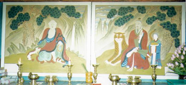 matched-pair of Deok-seong and San-shin paintings enshrined there. San-shin holds a ginseng root and a leaf-fan;